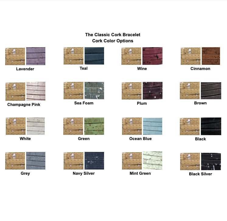 Portuguese Cork Bracelet black with silver accents and magnetic clasp (10mm wide). Cork is smooth and lightweight making this bracelet especially comfortable to wear. XS - fits up to about a 6" wrist S - fits up to about a 6 1/2" wrist * M - fits up to about a 7" wrist * L - fits up to about a 7 1/2" wrist * Cork is used as a vegan substitute for leather in a wide range of products including jewelry. It is a natural material so each product will be unique.